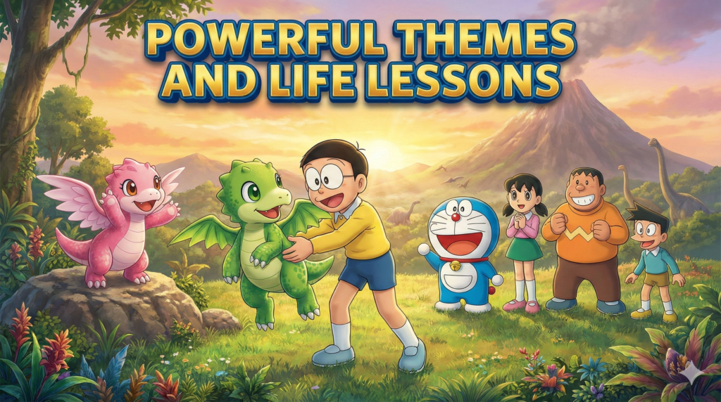 The relationship between Nobita, Doraemon, and the dinosaurs also highlights the value of loyalty. With loyalty, commitment, and genuine friendship, friends can let go of each other so that they can protect their loved ones.