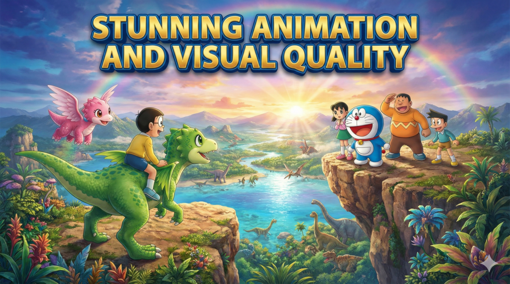 Doraemon: Nobita’s New Dinosaur: A beautifully animated Japanese family adventure film, Doraemon: Nobita’s New Dinosaur is a remake that takes the audience back to the emotional depth and innocence associated with the classic world of Doraemon. The film, released in 2020, is a remake based on the 1980 animated film “Doraemon: Nobita’s Dinosaur,” but with a new storyline, new animation, and deeper emotions. Directed by Kazuaki Imai, the film is a blend of fantasy, adventure, and emotions that appeals to both kids and adults.