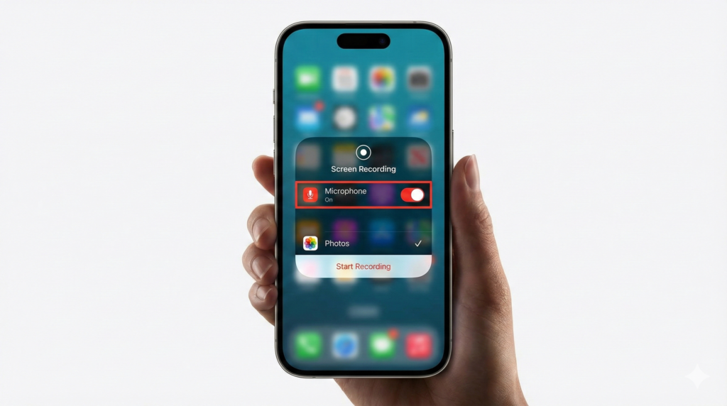 To use this method, you need an iPhone running iOS with access to the Control Center. The Screen Recording feature must be enabled along with Microphone access. No third-party application or jailbreaking is required for this method.